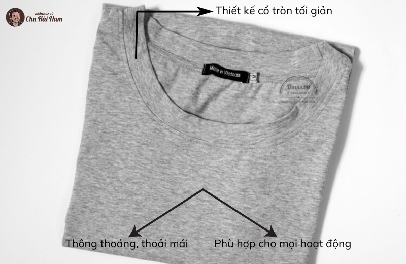 Cổ tròn cổ điển: Đường viền cổ được may bo chắc chắn, không bị dão hay biến dạng, giúp trang phục luôn giữ được phom dáng chuẩn mực.