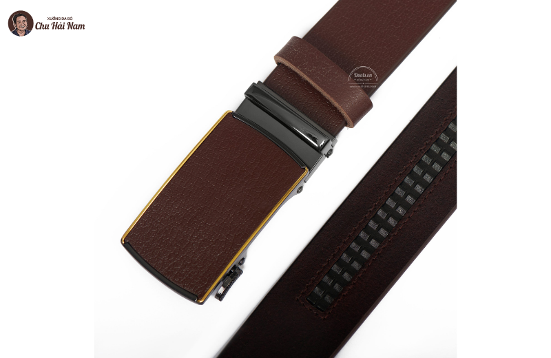 Mặt khóa tự động thông minh: Thiết kế mặt khóa hợp kim cao cấp không gỉ, cơ chế khóa tự động giúp quý ông dễ dàng điều chỉnh độ rộng chật của dây lưng chỉ với một thao tác kéo nhẹ.