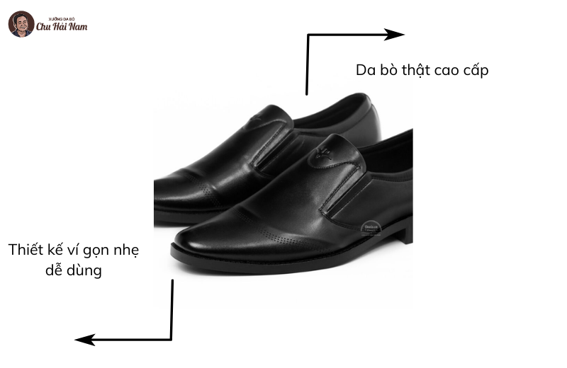 Thiết kế giày công sở xỏ tiện lợi, phù hợp với phong cách nam giới hiện đại, lịch sự nhưng không cầu kỳ.