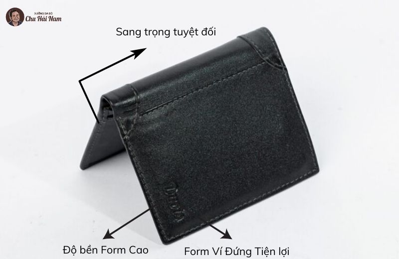 Form Ví Đứng Tiện lợi: Thiết kế ví đứng giúp dễ dàng rút tiền/thẻ hơn khi sử dụng, giảm độ cộm.