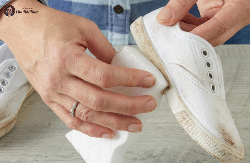 Không dùng tẩy quá cứng hoặc tẩy đã bẩn vì có thể làm xước bề mặt giày.