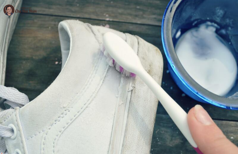 Kem đánh răng trắng (không gel, không hạt) có khả năng làm sạch nhẹ và làm sáng bề mặt, đặc biệt hiệu quả với phần đế giày hoặc vết ố nhẹ.
