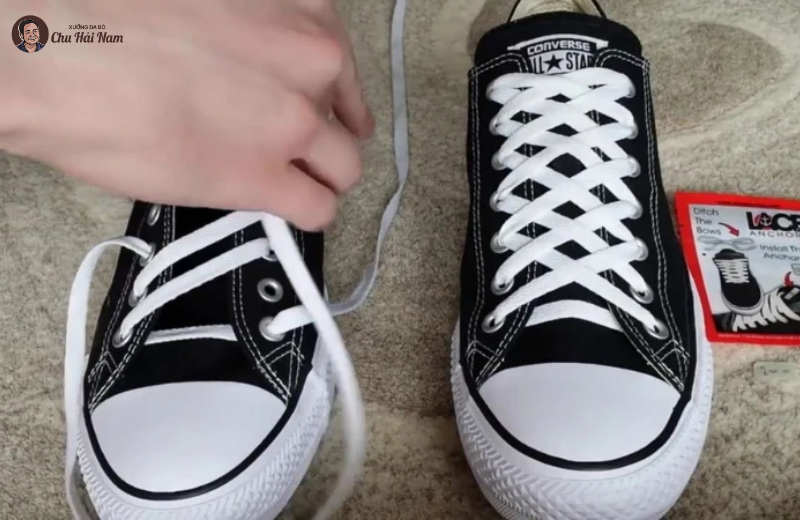 Đây là cách thắt dây giày dài thường thấy ở giày cổ cao, Converse High hoặc boot, vừa xử lý dây thừa vừa tăng độ cố định cổ chân.
