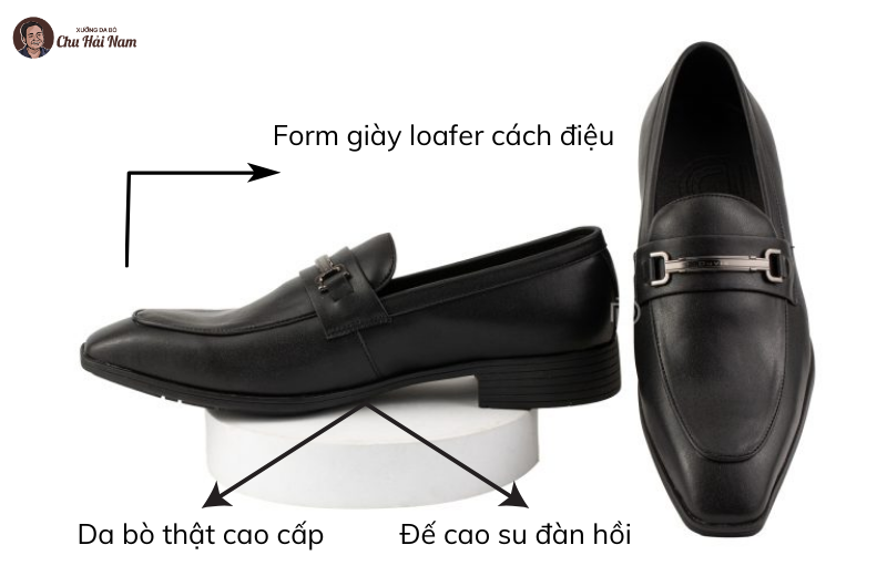 • Thiết kế giày tây nam dáng loafer cách điệu, lịch sự, phù hợp với môi trường công sở hiện đại.