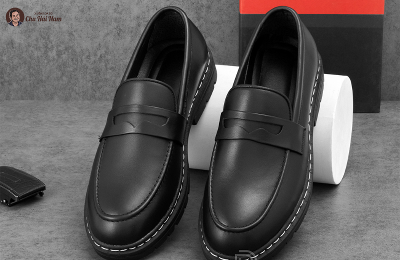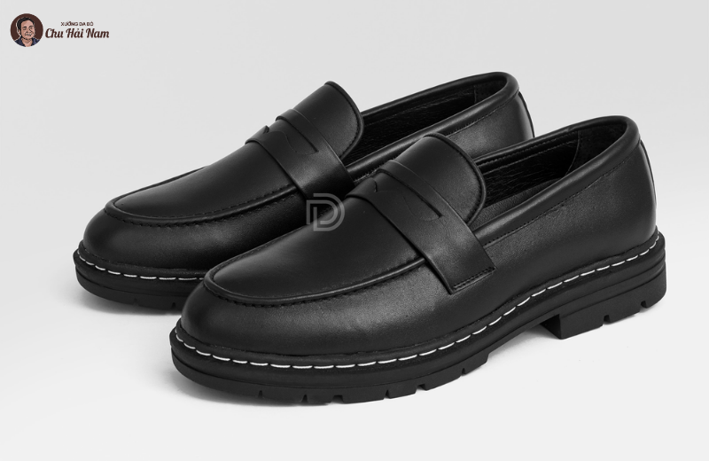 Đường chỉ trắng nổi bật, tạo điểm nhấn khác biệt so với loafer thông thường.
