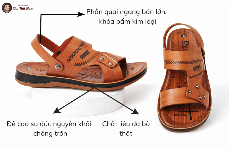 Thiết kế dép da sandal quai hậu chắc chắn, ôm gọn bàn chân khi di chuyển.