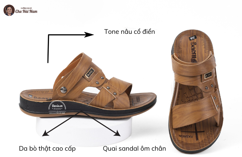 • Dép da bò thật 100% bề mặt mềm, dày dặn, chịu lực tốt – càng mang càng lên màu đẹp.
