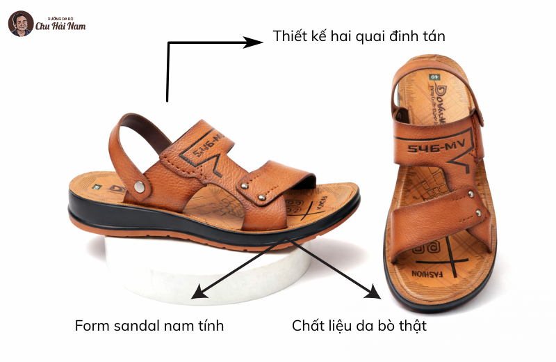 Form dép da sandal ôm chân, bản quai rộng tạo cảm giác vững chắc khi di chuyển.