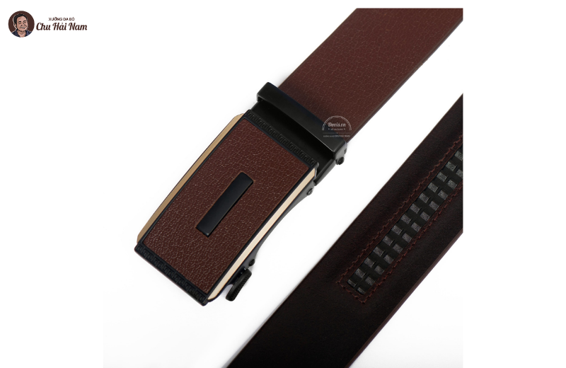 Mặt khóa tự động thông minh: Thiết kế mặt khóa hợp kim cao cấp không gỉ, cơ chế khóa tự động giúp quý ông dễ dàng điều chỉnh độ rộng chật của dây lưng chỉ với một thao tác kéo nhẹ.