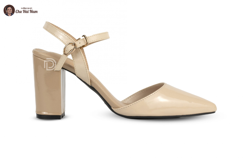 Gót vuông cao vừa phải, chắc chắn, giúp di chuyển ổn định và không đau chân.