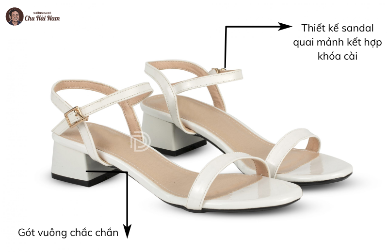 Gót vuông cao vừa phải, giữ thăng bằng tốt và tôn dáng tự nhiên.