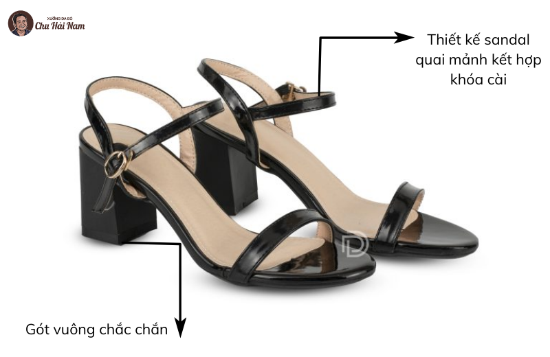 Gót vuông cao vừa phải, giúp tôn dáng nhưng vẫn đảm bảo sự ổn định khi đi lại.