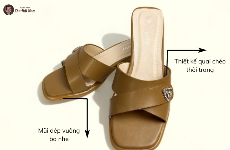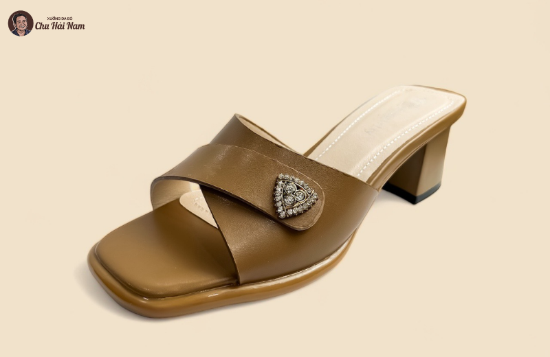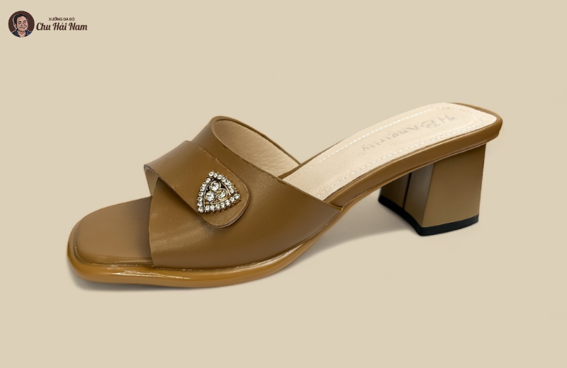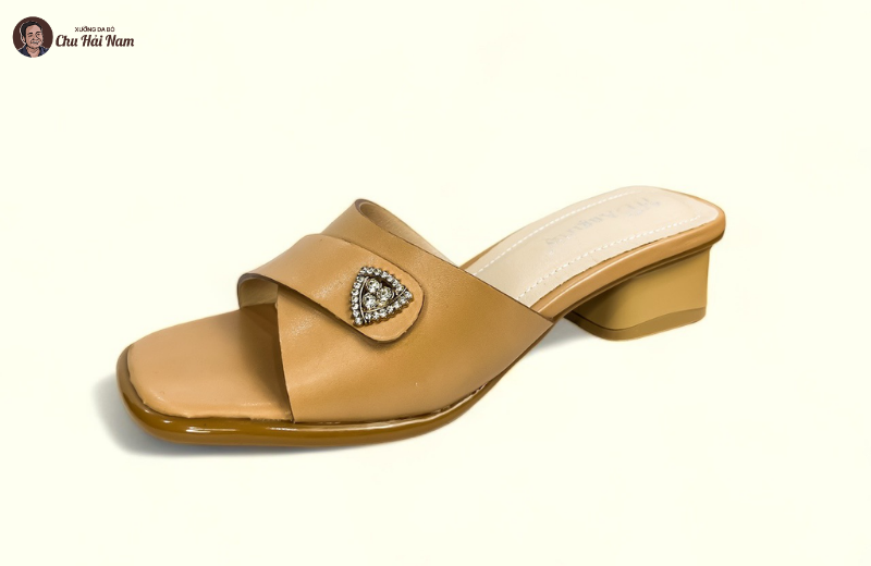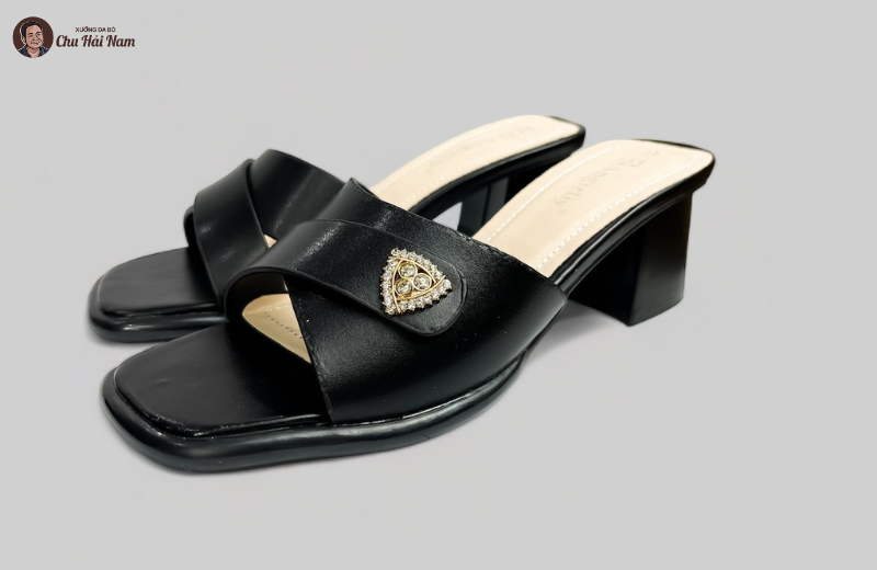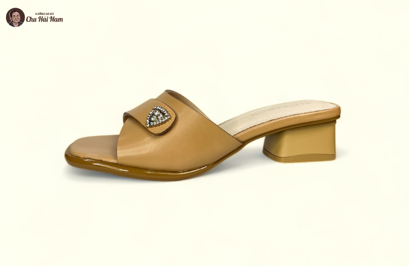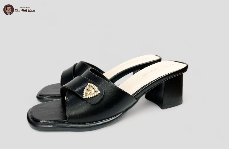 Phần đế cao gót trụ được thiết kế chắc chắn, giúp giữ thăng bằng tốt khi bước đi. Chiều cao gót vừa phải giúp tôn dáng nhưng không gây cảm giác mỏi chân. Lót trong êm ái, hỗ trợ bàn chân suốt ngày dài. Đế ngoài chống trơn trượt, tăng độ an toàn khi di chuyển trên nhiều bề mặt. Đây là mẫu dép lý tưởng cho những ai thường xuyên đi làm, gặp gỡ hoặc dạo phố.