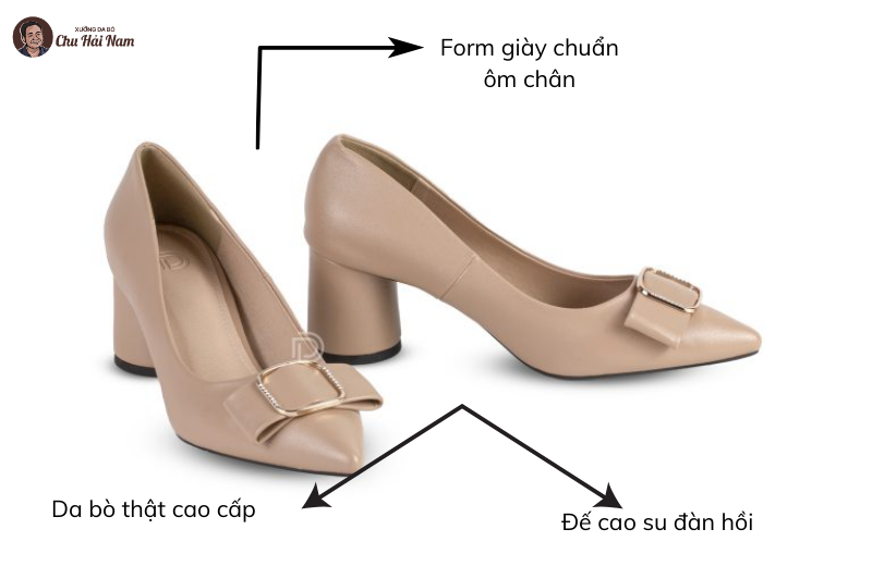 • Thiết kế giày cao gót nữ thanh lịch, phom dáng gọn gàng, giúp tôn dáng và tạo sự tự tin khi di chuyển.