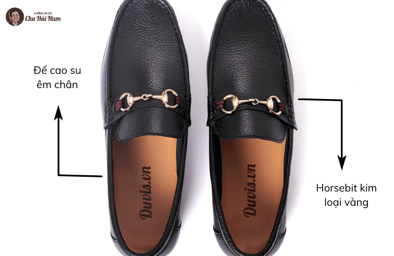 Horsebit kim loại vàng: Chống gỉ, tạo điểm nhấn sang trọng.