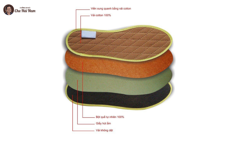 Lớp bột quế tự nhiên giúp khử mùi hôi, diệt khuẩn, tạo mùi hương dễ chịu.