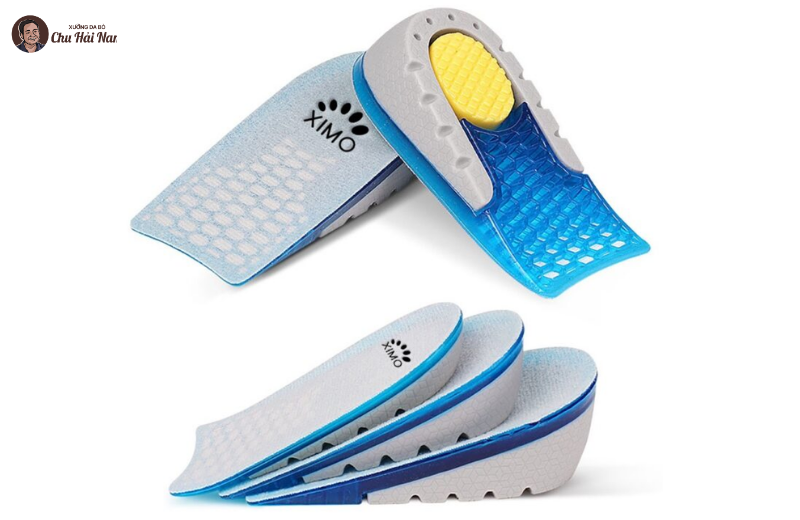 Thiết kế lót nửa bàn chân, tập trung nâng gót hiệu quả mà không gây cộm mũi giày.