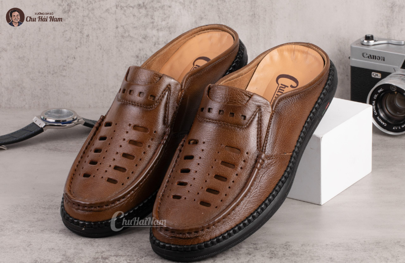 Da bò thật 100%, bề mặt mềm mịn, đàn hồi tốt, càng mang càng êm và bóng đẹp tự nhiên.