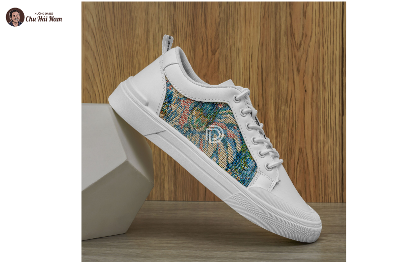 Phối vải thổ cẩm cao cấp – điểm nhấn luxury hiếm gặp trong dòng giày sneaker.