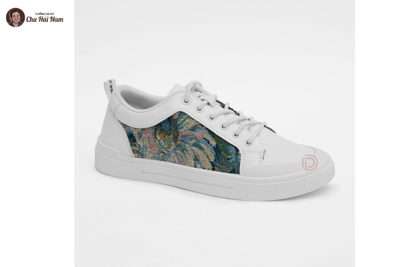 Thân giày làm từ da PU cao cấp kết hợp họa tiết woven tapestry độc đáo, tạo chiều sâu thẩm mỹ.