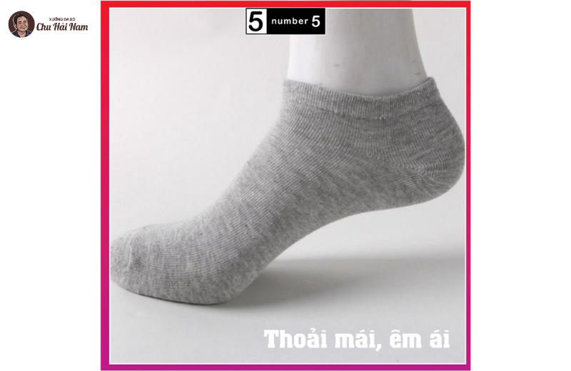 Cảm giác êm ái ngay từ lần mang đầu tiên. Sợi cotton dệt mịn, không chỉ mang lại sự thoải mái tối đa mà còn có độ ôm chân vừa phải, giúp tất không bị xoắn hay nhăn nhúm bên trong giày. Chất liệu cao cấp hạn chế tối đa cảm giác nóng bức.