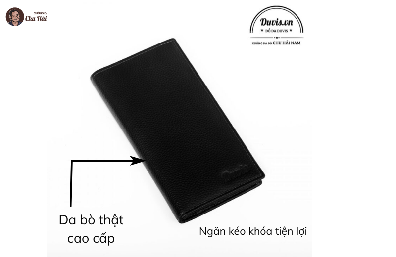 Form ví cầm tay nam dáng dài, gọn gàng, dễ sử dụng.