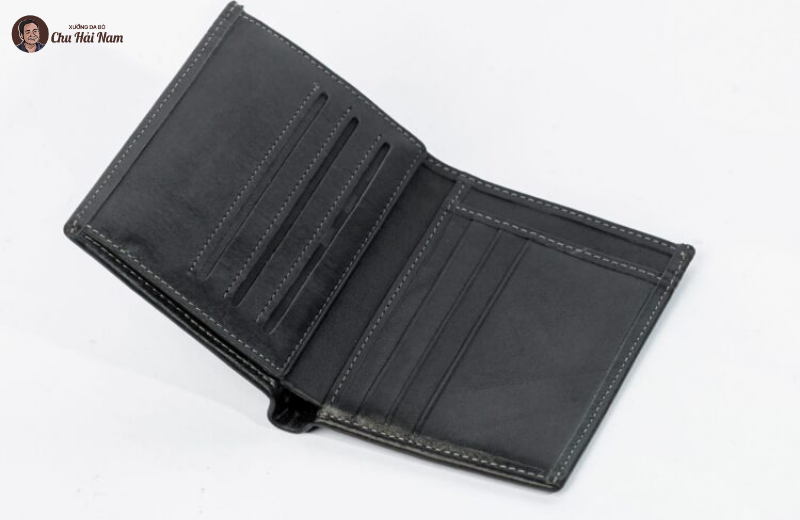 Bên trong ví nam bố trí nhiều ngăn đựng tiền, thẻ, giấy tờ khoa học – giúp sắp xếp đồ gọn gàng.
