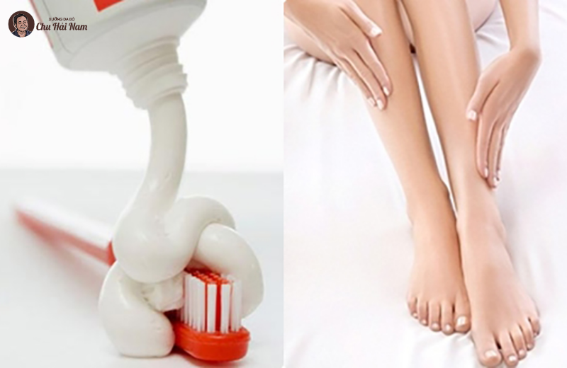 - Thoa kem đánh răng lên chân