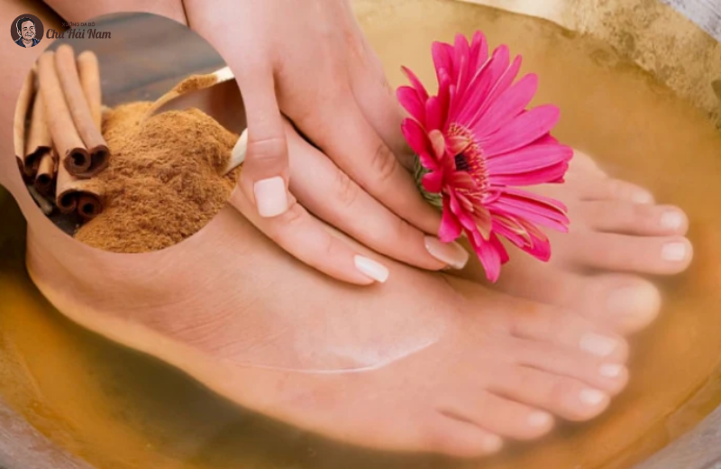 - Thoa một lớp mỏng bột quế lên lòng bàn chân và kẽ ngón