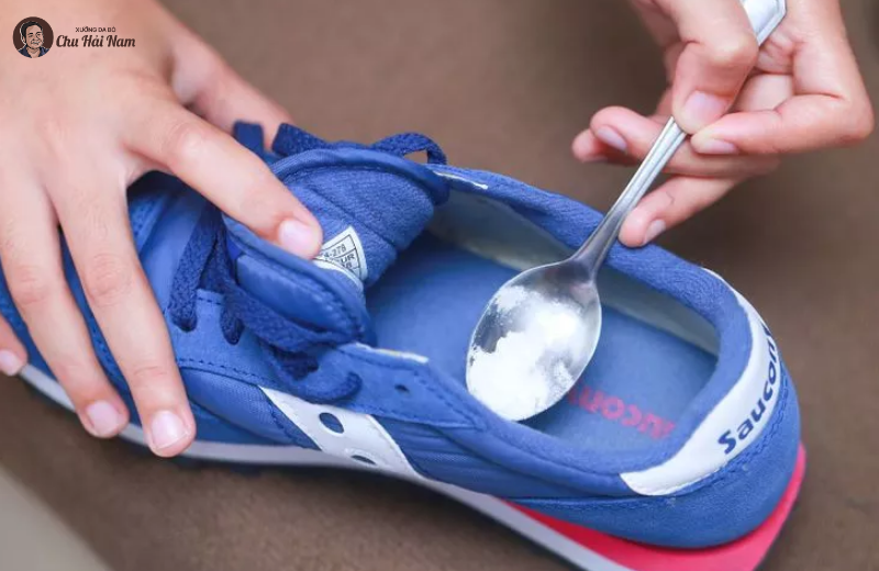 - Cách 2: Rắc baking soda vào giày, để qua đêm rồi đổ bỏ